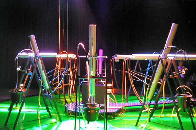 Jacques Rémus uses tubes of different length to obtain deep bass sounds and very clear tones. The tubes of his installation are not tuned. The sound creation is based on a computer program controlling the heaters of the various tubes in use. Temperatures vary between 600 and 800 degrees centigrade.