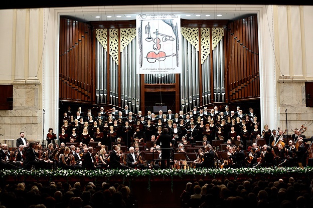 Dem letzten Satz fehlte es bei aller Dynamik nicht an Feierlichkeit. Unter den Solisten stach Heli Veskus mit ihrem Strahlesopran heraus, wobei Bernarda Fink im Mezzopart ziemlich unterging. Michael Schade brachte es unter Aufbietung aller vokalen Kräfte fertig, die Tenorpartie klar und deutlich herüberzubringen, und auch der Bariton Markus Eiche wurde seiner Rolle durchaus gerecht. Einen hervorragenden Eindruck hinterließ der Philharmonische Chor Warschau mit seinen kräftigen Männerstimmen, die in völliger Harmonie mit den Frauen ein wohl ausbalanciertes Ensemble bildeten. Das Publikum in der Philharmonie feierte die Künstler mit einer lang anhaltenden Ovation.