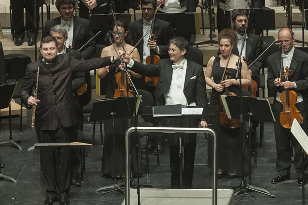 Lukasz Dlugosz, conductor Jun Märkl and the Euskadi Orchestra at the ICMA Gala in San Sebastian (1/4/16) © Juantxo Egana